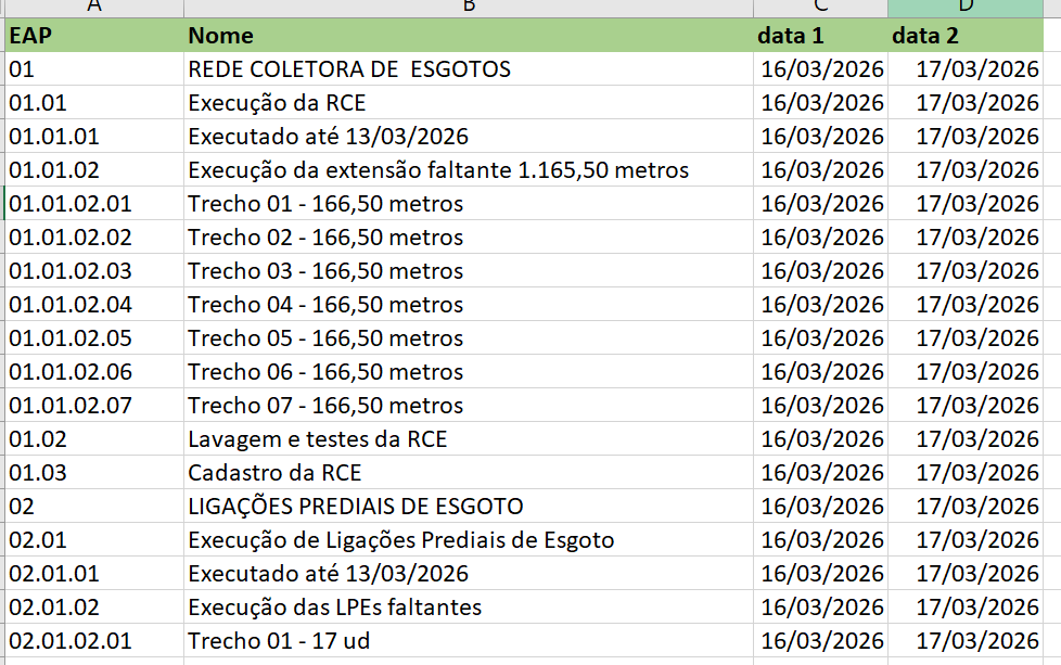 ⚠️ Importante: É necessário verificar se os códigos da EAP estão seguindo o mesmo padrão antes da importação.