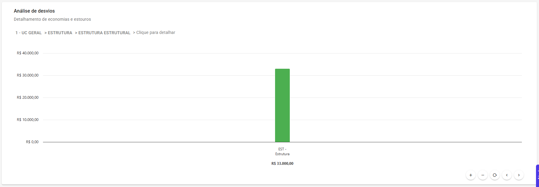 Neste bloco, é possível visualizar detalhadamente as economias e os estouros, ou seja, os resultados da coluna de desvio da tendência de forma gráfica e intuitiva.