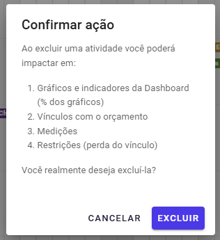 Importante: Caso desejes excluir pacotes de trabalho já lançados no cronograma, podes impactar em diversos locais como: (Logo após excluir o pacote de trabalho a função Ctrl + Z não irá fazer com que ele retorne)