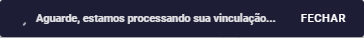 • O sistema apresenta feedback visual mostrando os status Processando vinculação e Vinculação concluída.