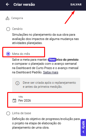 Agora é possível salvar as metas mensais diretamente no Gantt, garantindo que o histórico seja preservado para análises futuras. Essa funcionalidade permite comparar a meta, o previsto e o realizado, trazendo mais assertividade para o planejamento da obra e para o acompanhamento da evolução do projeto.