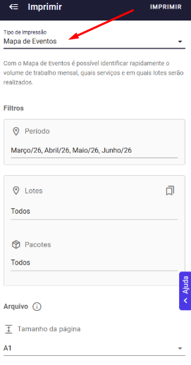 A impressão do Mapa de Eventos está disponível para todos os perfis de usuário.