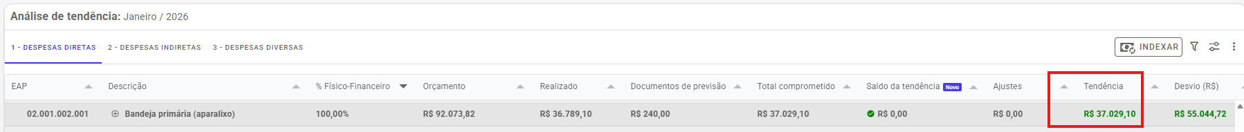 Tendência = Comprometido + Saldo + Ajustes
